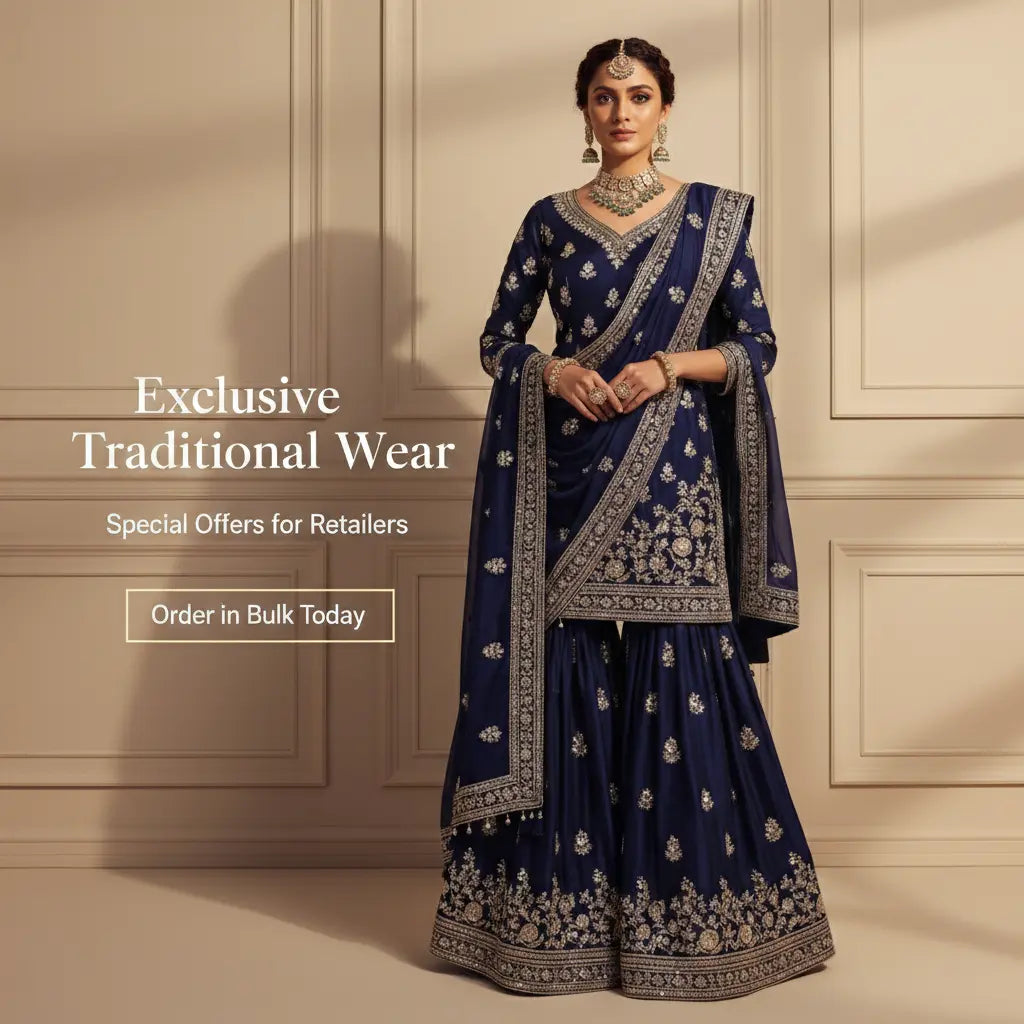 We supply premium traditional Indian clothing in bulk, combining rich heritage, quality fabrics, and timeless designs for modern women.